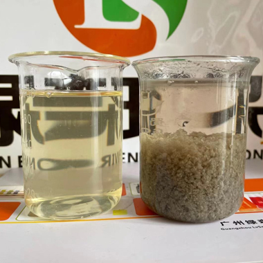 綠森環保技術團隊應某化妝品客戶要求上門技術服務,現場給客戶廢水破乳劑中試。客戶廢水:沐浴露廢水,特點:含有乳化劑、增稠劑、抗氧化劑、防腐殺菌劑和香精色素等,廢水顏色:淺黃色。使用破乳劑破乳后廢水上清液清澈透明,如下圖       &nbs···